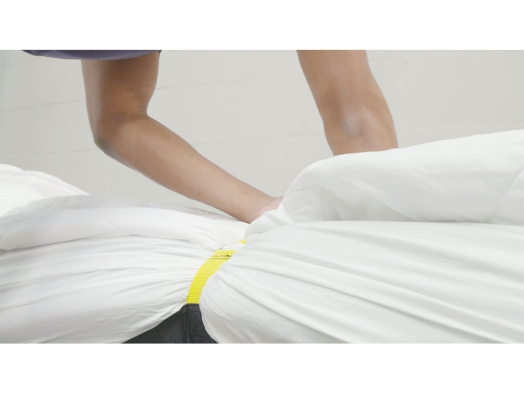 - Bezpečně pratelná v pračce a sušená v sušičce– neobsahuje kovové a/nebo těžké zámky, přezky či jiné spojovací prvky, které by se mohly zachytit v rámu postele a/nebo poškodit vybavení prádelny